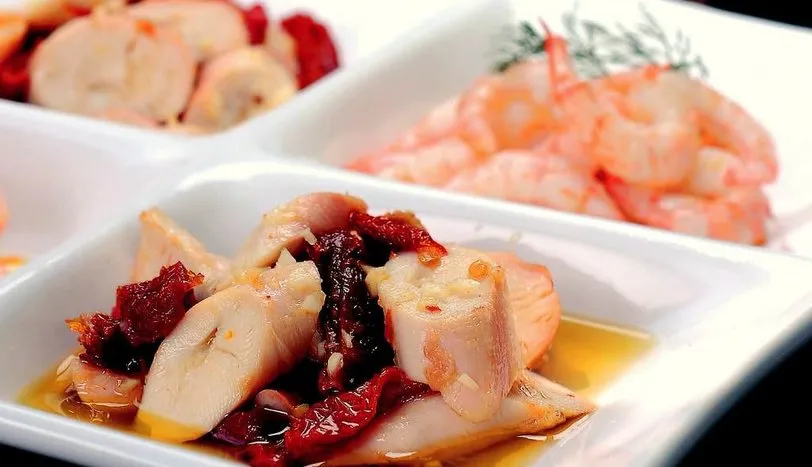 Kuru soğan, beyaz şarap, defne yaprağı ve üzerini doğranmış salata malzemelerini, zeytinyağı, tuz, beyaz biber ve cajun baharatı ile harmanladıktan.